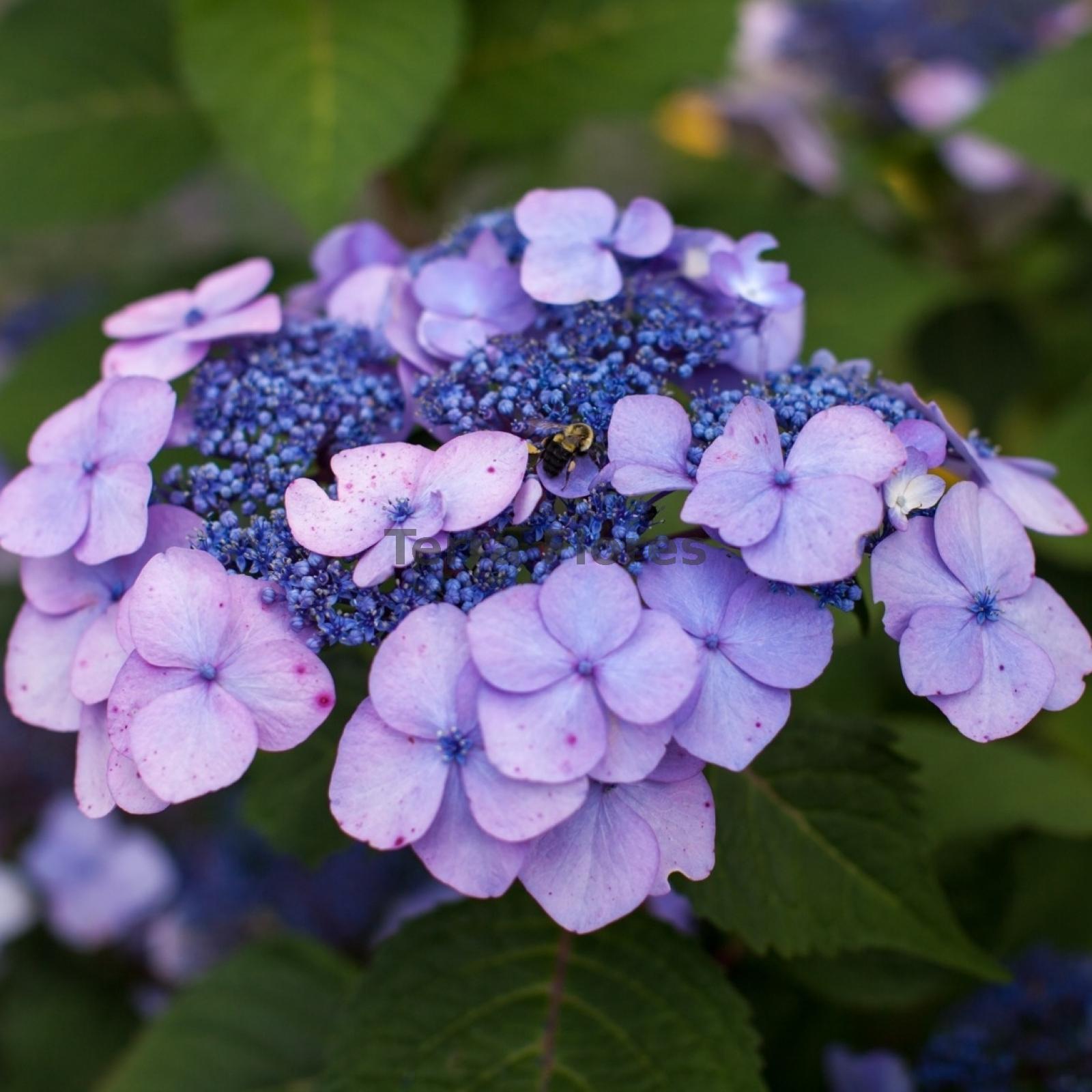 Цветение обильное и продолжительное. Соцветия округлой формы, крупные, в диаметре каждое вырастает до 25 см. Окраска цветов лавандовая или светло-голубая. По мере распускания центральные части цветов светлеют до бело-кремово-зеленоватого оттенка. Цвет лепестков изменяется в зависимости от типа почвы.