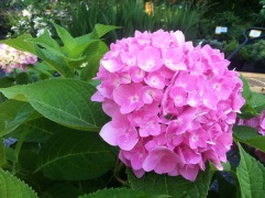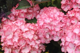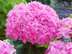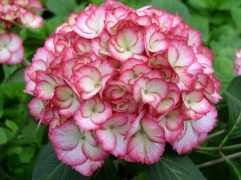 Соцветия крупные, до 25 см в диаметре. Окраска- розовая, оттенок зависит от типа (кислотности) почвы. Соцветия плотные, цветок розовидный, в диаметре до 5 см.