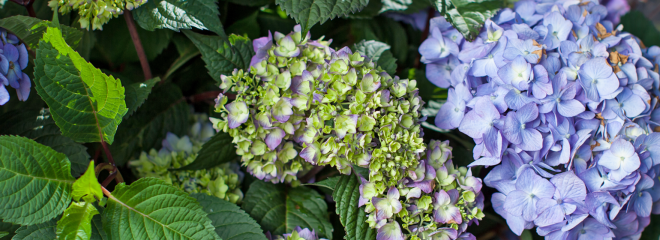 Блестящие кожистые листья-отличительная особенность этого сорта. Диаметр соцветия до 20 см.Основной цвет соцветия-голубой. В начале цветения цветочки желтовато-зеленоватые, затем в кислой почве - голубые, в щелочной - лилово-розовые.Соцветие у " Ю энд Ми Форевер" со стерильными цветками по краю, затем постепенно заполняется махровыми цветками.