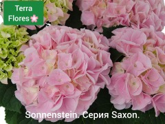 Saxon® Sonnenstein'- сорт с очень крупными соцветиями. Округлый, кустарник с широкими яйцевидными, зубчатыми, глянцевыми темно-зелеными листьями. Цветет с середины лета до начала осени. Цветы большие нежно-розового цвета. Цветет на побегах прошлого года.